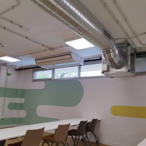 Instalación de Equipo Toshiba con sistema VRF de 50 Kw con unidades interiores Split de techo.